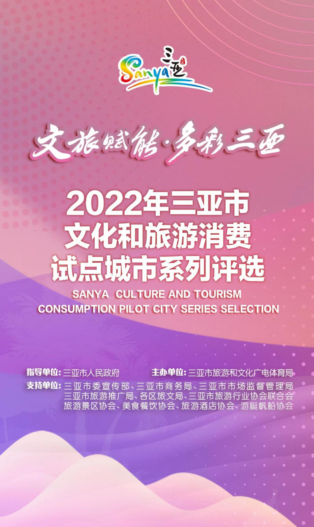 引领文旅消费潮流,打造文旅融合标杆。10月27日,由三亚市人民政府指导,三亚市旅游和文化广电体育局主办的2022年三亚市文化和旅游消费试点城市系列评选正式开启网络大众投票环节。